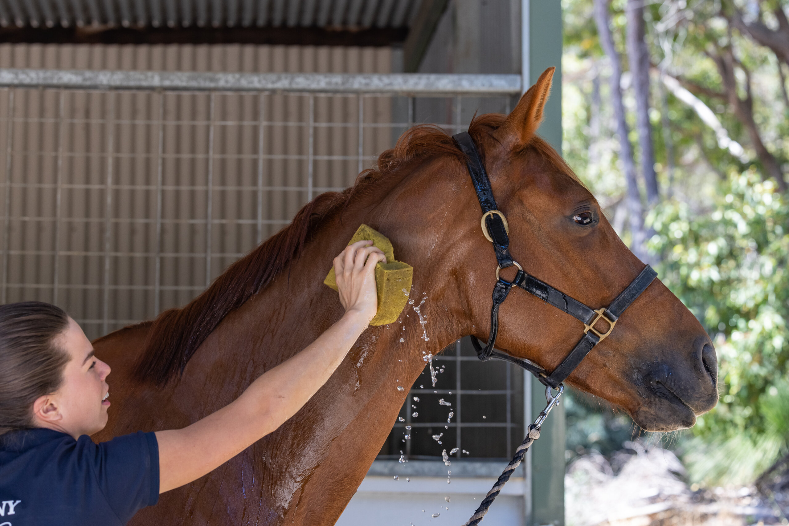 Typically, hosing down after exercise is considered effective cooling. However, there are some instances where running water and a hose are not always available. Or, if they are available, there is sometimes a queue! To determine how effective alternative cooling methods are, post-exercise muscle temperature was recorded for horses receiving either a hose down, sponge bath, or hand walking. Heart rate, respiratory rate and muscle temperature were recorded. Both sponging and hosing were effective in reducing muscle temperature recovery, compared to hand walking alone. Respiratory rate recovered to pre-exercise levels by 5 mins, 10 mins, and 20 mins post-exercise for hosing, sponging and walking respectively. Heart rate recovered within 15 minutes regardless of cooling method, however, walking had a higher overall heart rate. This study suggests that sponging is also an effective cooling method. It should be noted that the sponge bath used liberal amounts of water over the horse’s entire body, so smaller amounts of water applied to isolated areas of the body may not offer the same cooling effect.
